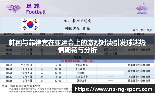 韩国与菲律宾在亚运会上的激烈对决引发球迷热情期待与分析